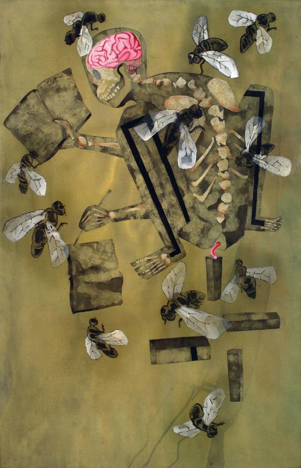 Watercolour, acrylic, marble dust and charcoal on paper
